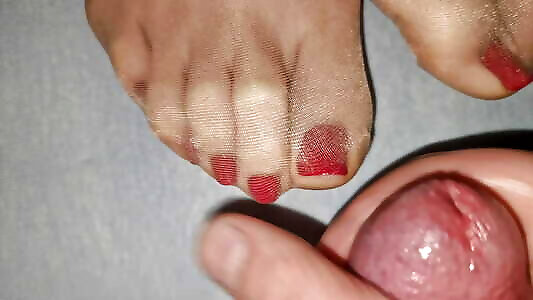 16:42Nylon Footjob. Jerking his cock with my seachnudist retro in black stockings.